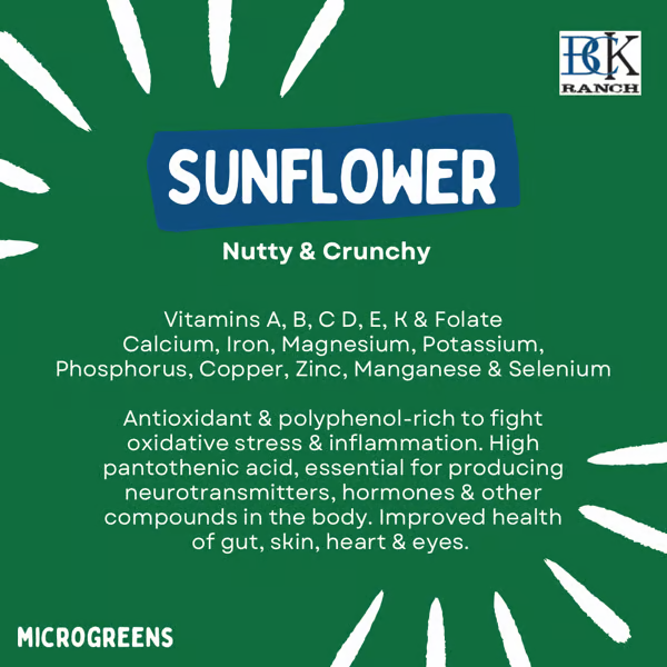 Unlock a world of health and flavor with our Sunflower Microgreens, now available in a convenient 2oz container! Bursting with vitamins A, B, and E, plus essential minerals like iron and potassium, these tiny greens are your ticket to a healthier lifestyle. Boost your immune system, nourish your skin, and even support weight loss with every bite. With a delightful nutty flavor and hint of sweetness, they're the perfect addition to salads, smoothies, soups, and sandwiches.