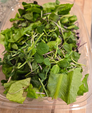 Need a great addition to your meals? Our prepackaged 1/2lb salads are mixed with both our hydroponic Red Iceberg and Romaine lettuces in addition to our cilantro and wasabi microgreens! Each salad is packed with all the health benefits and both a great to-go and at home addition without the preparation! Kick up the heat with our cilantro and wasabi and bring a new twist to your meals!